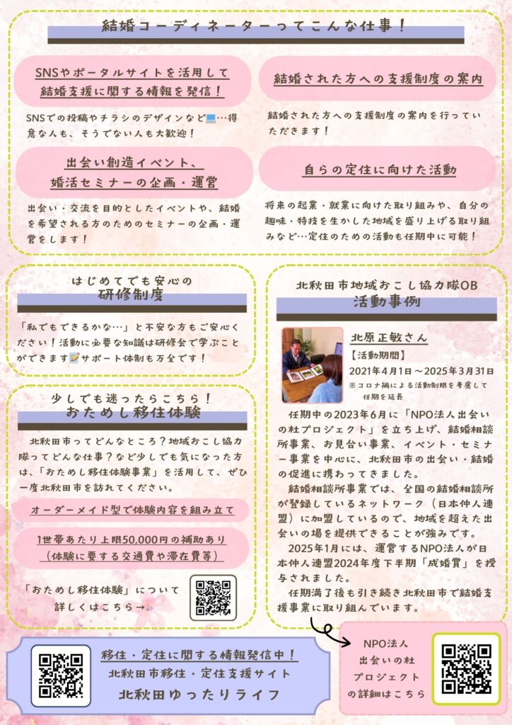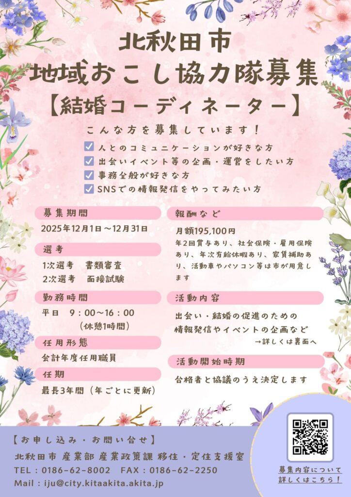 出会い・結婚の促進に取り組む北秋田市地域おこし協力隊を募集します!